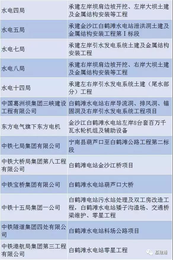 白鶴灘水電站土建工程主要由中國(guó)電建下屬的成員企業(yè)承擔(dān)施工任務(wù),具體分工如下: