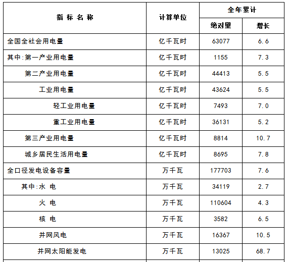 編者:上表中全口徑發(fā)電量指所有的電力企業(yè)發(fā)電量總和(包括規(guī)模發(fā)電廠和非規(guī)模發(fā)電廠),含小水電發(fā)電量數(shù)據(jù)。