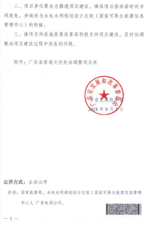 月3日,廣東省發(fā)改委下發(fā)《關(guān)于調(diào)整部分普通光伏電站項目建設(shè)規(guī)模的通知》,綜合考慮項目建設(shè)條件及建設(shè)進度,優(yōu)先支持屬擴建性質(zhì)、不需新建升壓站及電網(wǎng)送出工程,并承諾在今年12月31日前并網(wǎng)發(fā)電的普通光伏電站項目。