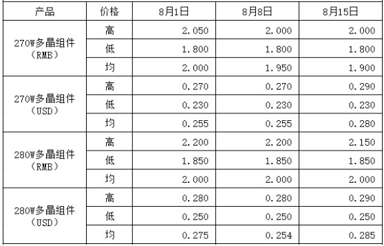 目前,各大組件企業(yè)的長(zhǎng)期庫(kù)存產(chǎn)品基本售空,低效組件供給減少,一線企業(yè)出貨主要為多晶270-275W和單晶285-290W,市場(chǎng)價(jià)格平穩(wěn)下降。