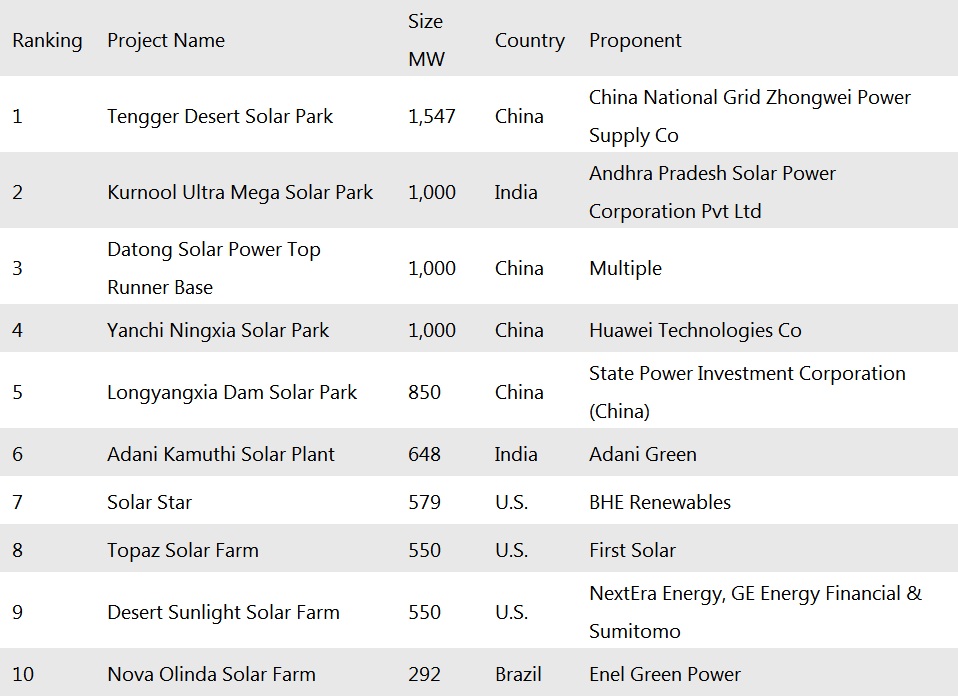 根據(jù)IEEFA的統(tǒng)計(jì),全球最大的經(jīng)營(yíng)實(shí)用規(guī)模的太陽(yáng)能項(xiàng)目集中在中國(guó)和印度,包括: