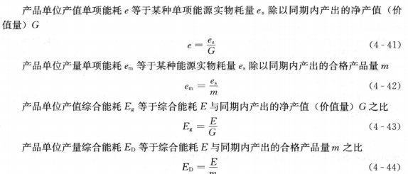 能耗的概念只反映能源的消耗水平,不能反映能源的利用效果,只有把能耗與其生產(chǎn)的效果——產(chǎn)出產(chǎn)品的產(chǎn)量或產(chǎn)值結(jié)合起來才能說明能源利用的效果。這里引入產(chǎn)品單位產(chǎn)量或產(chǎn)值能耗的概念,其含義即為生產(chǎn)單位產(chǎn)品或創(chuàng)造單位凈產(chǎn)值(價值量)所消耗的能源量。對應(yīng)于單項能源能耗和綜合能耗,產(chǎn)品能耗分為:產(chǎn)品單位產(chǎn)值單項能耗、產(chǎn)品單位產(chǎn)量單項能耗和產(chǎn)品單位產(chǎn)值綜合能耗、產(chǎn)品單位產(chǎn)量綜合能耗和產(chǎn)品可比單位產(chǎn)量綜合能耗,它們的計算如下: