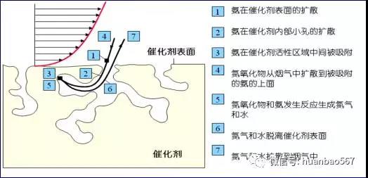 煙氣脫硝一級還原反應(yīng)需要足夠多的接觸面積和活性顆粒位,反應(yīng)進(jìn)程主要受到NO與NH3在微孔內(nèi)的擴(kuò)散影響。