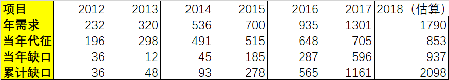 2012-2017年數(shù)據(jù)來(lái)源:國(guó)網(wǎng)能源研究院;財(cái)政部全國(guó)政府性基金收入、支出決算表