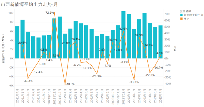 圖1山西新能源逐月平均功率(2021.4-2023.7)