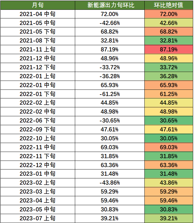 定義新能源波動較大的旬:新能源旬環(huán)比絕對值大于30%的旬。