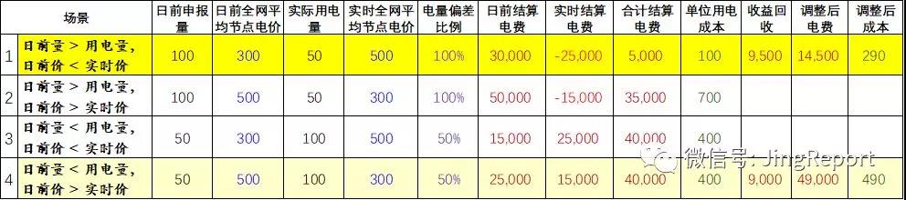 首先假設(shè)最大申報(bào)偏差率()為5%,根據(jù)日前申報(bào)電量、實(shí)際用電量和日前電價(jià)、實(shí)時(shí)電價(jià)的大小不同,排列組合下列四種場景進(jìn)行對(duì)比:
