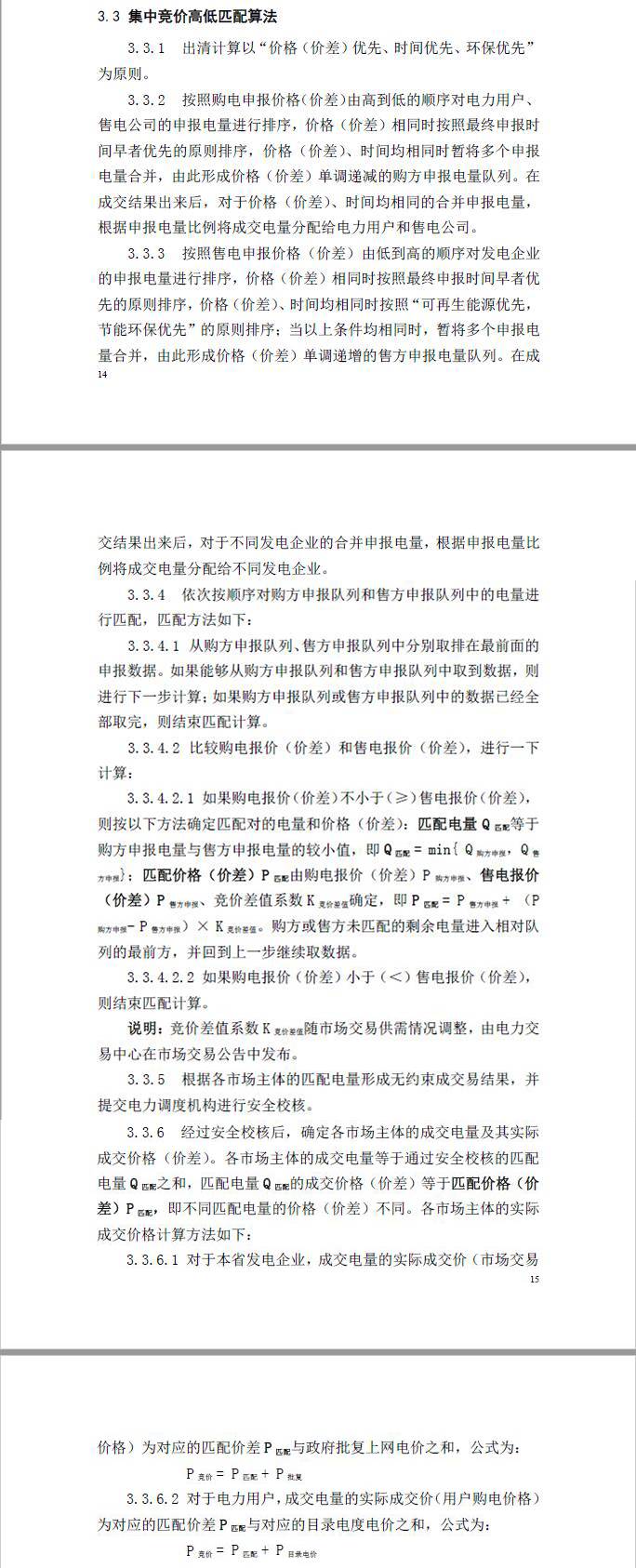 1. 集中競價采取兩種算法,分別是統(tǒng)一出清算法和高低匹配算法,這與大部分地區(qū)采取一種集中交易算法的規(guī)則略不同。關(guān)于這兩種算法需要在什么條件下使用,原文是這樣說的: