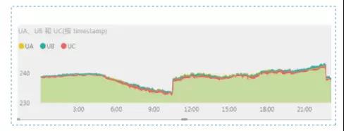 除了改善用戶用電質(zhì)量外,還可以為用戶帶來節(jié)能效益,根據(jù)不同用戶的不同情況,節(jié)能率可達(dá)到7%~15%。該用戶平均電壓為240V,DCVR設(shè)備將電壓穩(wěn)定于230V,圖中綠色陰影部分為該用戶可節(jié)約的電能,節(jié)能率為4.1%,如將該用戶電壓穩(wěn)定于設(shè)備標(biāo)準(zhǔn)額定電壓220V,節(jié)能率可達(dá)到8.5%。