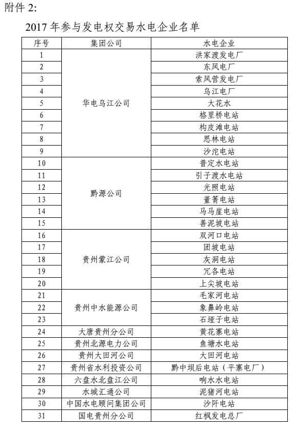 貴州開展2017年水火電發(fā)電權(quán)雙邊協(xié)商交易 每月交易電量4億千瓦時