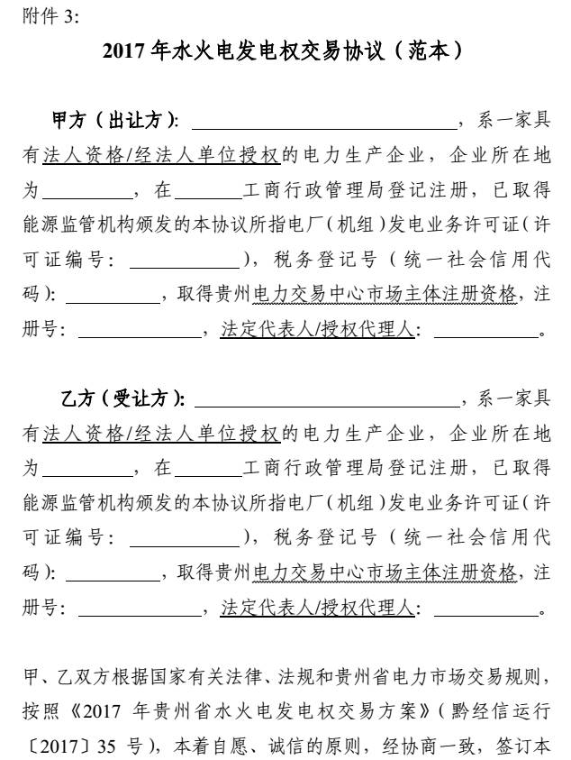 從貴州電力交易中心獲悉,貴州電力交易中心日前發(fā)布了關于開展2017年水火電發(fā)電權(quán)雙邊協(xié)商交易的通知。水火電發(fā)電權(quán)交易原則上采用雙邊協(xié)商方式進行,實行預交易,火電企業(yè)提供預出讓電量,水電企業(yè)根據(jù)裝機容量