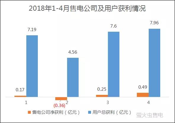 2018年1-4月份,售電公司從市場合約獲利0.55億元,用戶獲利27.31億元,用戶獲利占比98%。