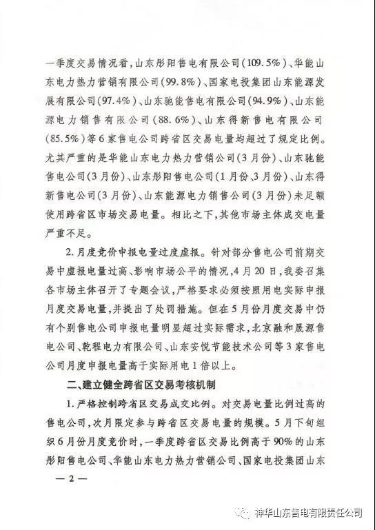 近日,山東省經(jīng)濟和信息化委員會下發(fā)《關于做好銀東直流跨省區(qū)市場交易的通知》,通知中稱:今年,我省全面放開售電公司進入跨省區(qū)市場,各參與主體市場意識和市場活躍度明顯增強,多買多賣、竟爭有序的跨省區(qū)電力市場建設取得明顯進展,截至目前累計交易電量45.5億千瓦時,完成進度48.9%。但也出現(xiàn)了部分市場主體過度虛報電量、跨省區(qū)交易電量超過規(guī)定比例等市場投機情況,嚴重影響市場公平。為確保銀東直流跨省區(qū)交易規(guī)范有序開展,特下發(fā)此通知。