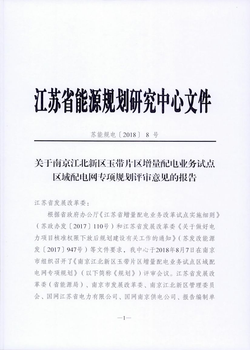 江蘇南京江北新區(qū)玉帶片區(qū)增量配電業(yè)務試點區(qū)域配電網(wǎng)專項規(guī)劃評審報告