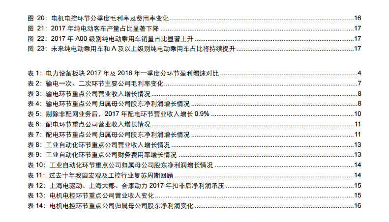 年報(bào)及一季報(bào)概述:工控環(huán)節(jié)景氣延續(xù),輸電及電機(jī)電控壓力維持