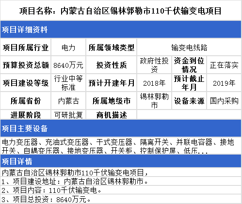 6省市輸變電項(xiàng)目詳情 最高項(xiàng)目總投資達(dá)14441萬元