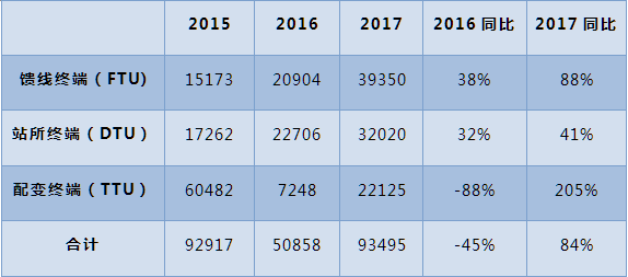 2017上半年的配網(wǎng)自動(dòng)化設(shè)備(配電線路故障指示器和配電終端)招標(biāo)規(guī)模達(dá)12.5億元,其中配網(wǎng)終端招標(biāo)規(guī)模8.5億元,占配電自動(dòng)化設(shè)備總額的68%。