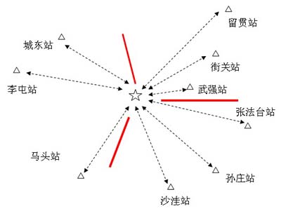 武強電網(wǎng)所轄9座變電站、10個供電所(1個所在公司院內(nèi),其余全部站、所合一)。在無線寬帶網(wǎng)絡(luò)方案中,采用5.8G頻率的54M點對多點的無線網(wǎng)絡(luò)連接方式。其中,在無線網(wǎng)絡(luò)系統(tǒng)中心點放置3臺BreezeACCESS VL系列的中心端設(shè)備 AU-D-SA-5.8-120-VL,使網(wǎng)絡(luò)中心的無線發(fā)射范圍形成360度,這樣就可接受來自不同方向的標配(分站)SU 連接設(shè)備的無線網(wǎng)絡(luò)信號。