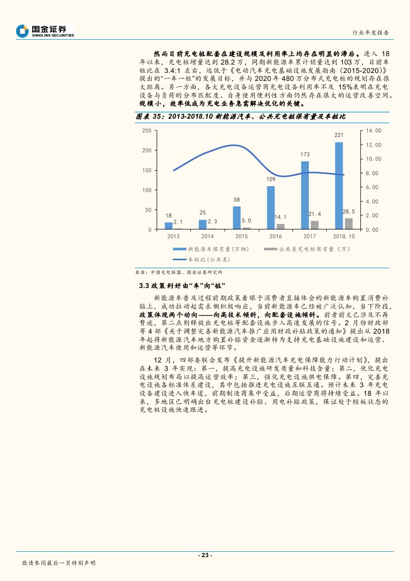 充電樁:下游拉動+政策利好,充電樁產業(yè)鏈迎來機遇期。截止 11 月份我國 新能源車保有量達到 250 萬,車樁比例為 3.4:1。充電樁一定程度制約了新 能源車消費需求的進一步增長,該情況亟待改善,加之補貼政策傾斜逐步由 車轉向樁,未來 3 年充電設備制造商迎來廣闊市場空間。我們判斷 2019 年 將出現(xiàn)兩類趨勢:1)充電量將急劇增大,其中公共類充電樁快充需求隨著 運營車數(shù)量的不斷增大也將快速放大。2)充電樁數(shù)量快速增長,以進一步 縮小車樁比,其中充電樁特別是公共類充電樁功率將呈現(xiàn)明確提升趨勢,整 機制造商、充電模塊等電力電源設備制造商將直接受益。