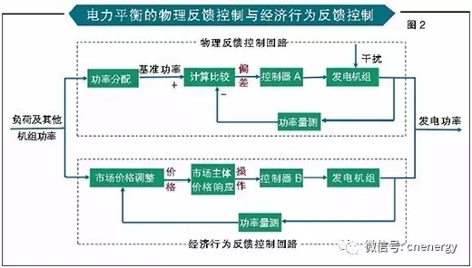 經(jīng)濟(jì)行為反饋控制回路主要是市場(chǎng)價(jià)格調(diào)整機(jī)制根據(jù)發(fā)電機(jī)組實(shí)際發(fā)電功率及其他信息獲得價(jià)格調(diào)整信號(hào),市場(chǎng)主體基于價(jià)格信號(hào)作出行為響應(yīng),并通過(guò)物理控制器調(diào)整發(fā)電機(jī)組功率,由于此類反饋控制包括人的經(jīng)濟(jì)行為,具有不精確、不靈敏、反應(yīng)遲緩的特點(diǎn)。但在電力市場(chǎng)經(jīng)典理論中,兩類反饋控制長(zhǎng)期被混為一談。