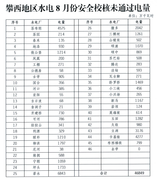 四川攀西地區(qū)約有4.7億千瓦時電量沒有通過校核