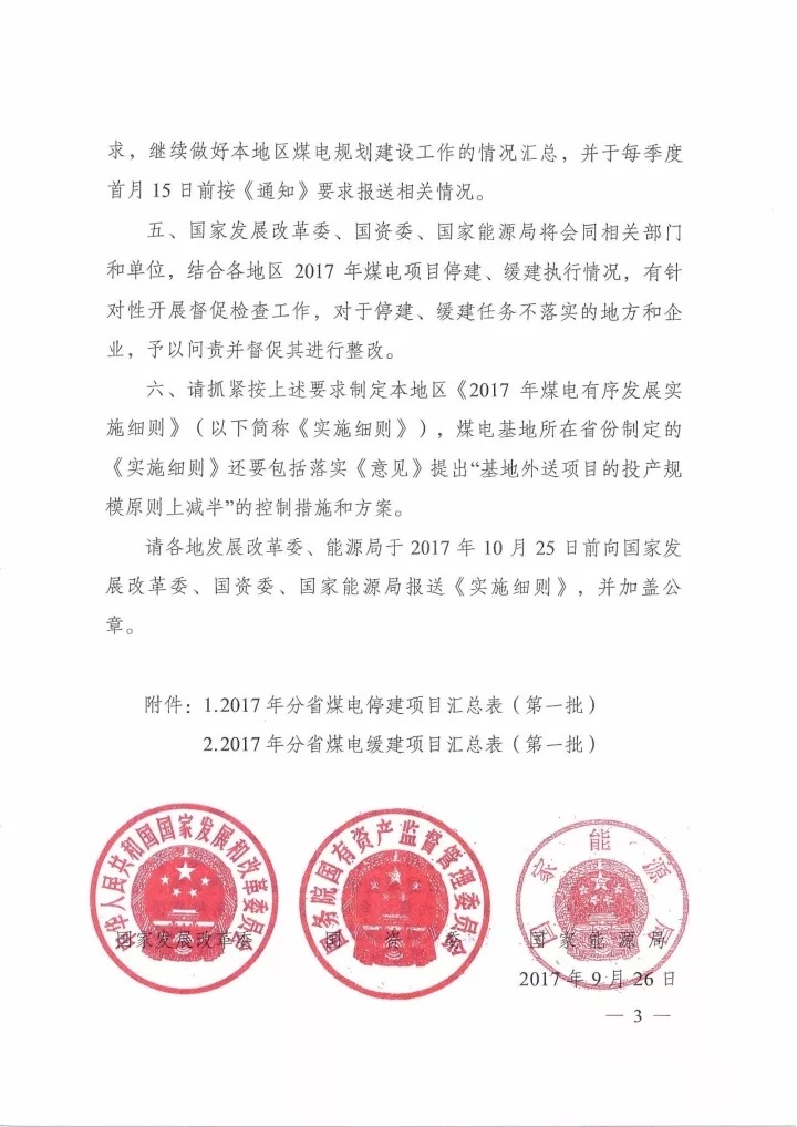 重磅丨三部門正式印發(fā)《2017年分省煤電停建和緩建項目名單的通知》