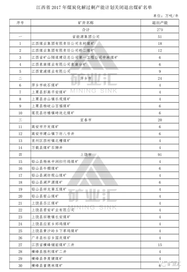 截止到目前,江西省共公布了兩批化解過剩產(chǎn)能計(jì)劃關(guān)閉退出煤礦名單。