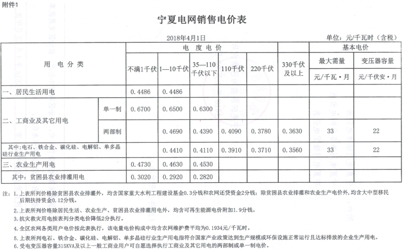 附件:1.寧夏電網(wǎng)銷售電價(jià)表