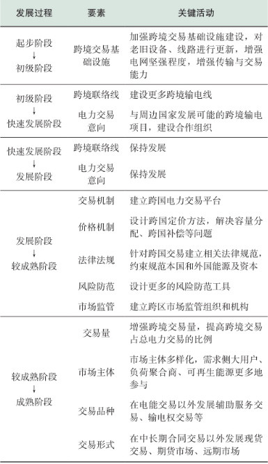 電網(wǎng)的互聯(lián)與跨境交易能夠促進(jìn)資源有效配置,其發(fā)展階段的劃分能夠?yàn)楦鲄^(qū)域與國(guó)家的跨境電力交易提供發(fā)展方向。