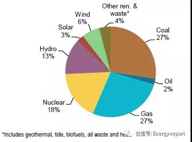 圖10 1971~2016年世界發(fā)電量結(jié)構(gòu)