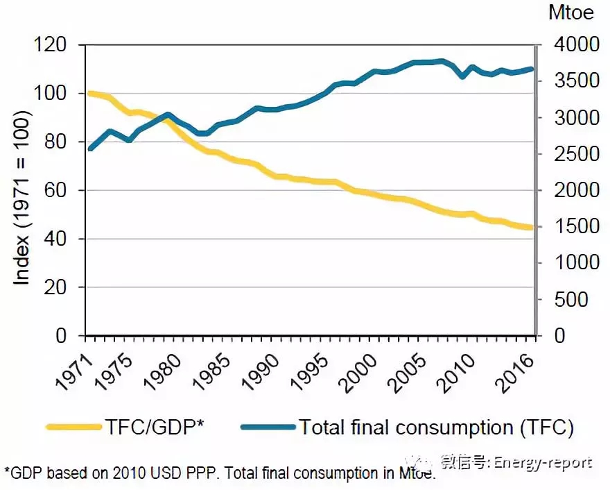 圖29 1971~2016年經(jīng)合組織國家終端能源強度