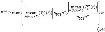 儲能系統(tǒng)的能量容量Esto應滿足T時間段內(nèi)分配給其調(diào)頻信號的能量需求,可由式(15)計算得出: