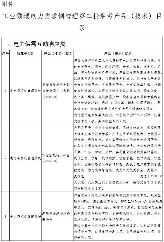 工業(yè)領(lǐng)域電力需求側(cè)管理第二批參考產(chǎn)品(技術(shù))目錄公示:含電力需求側(cè)管理等16項(xiàng)產(chǎn)品技術(shù)