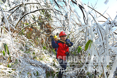 國網(wǎng)重慶長壽供電公司輸電運檢室和黔江運維站的20名員工組成了巡線小分隊,奔赴彭水縣和酉陽縣分別對220千伏張武南線、黔酉東西線進行特殊巡視,重點觀測風向、風速、氣溫、濕度以及覆冰厚度和形態(tài),分析預測覆冰發(fā)展趨勢;同時,充分利用無人機、望遠鏡等方式全方位觀測覆冰程度,保障線路安全運行。