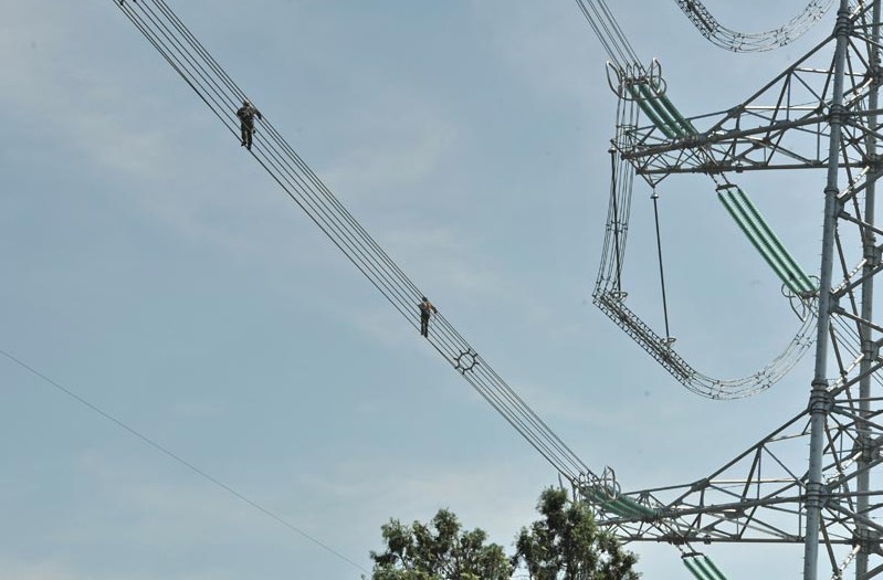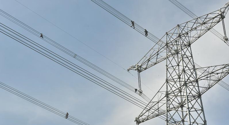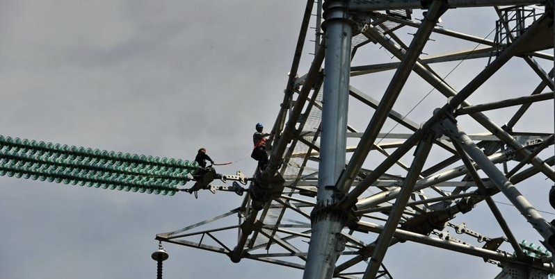 7月9日上午,皖電東送1000千伏特高壓線路浙江58至59標(biāo)段驗(yàn)收工程啟動(dòng),電力工人頂著高溫登上了一百多米高的鐵塔,通過(guò)高空走線的方式,對(duì)該特高壓線路進(jìn)行驗(yàn)收。