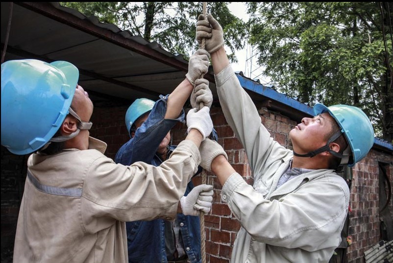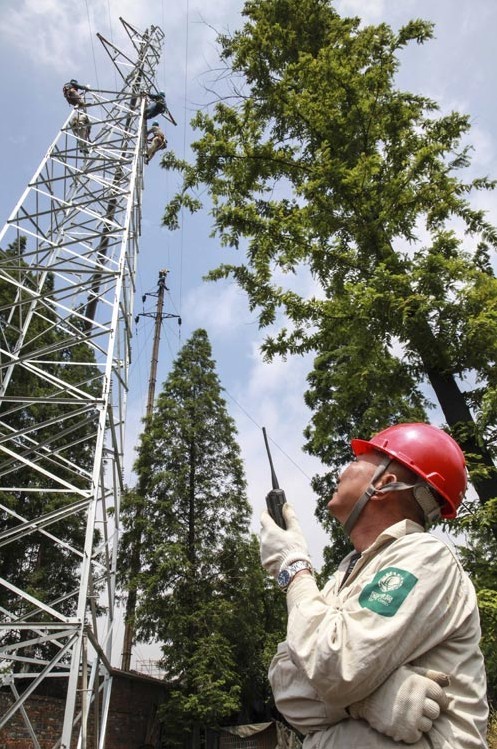 5月27日,江蘇泰州安泰輸變電工程有限公司工作人員正在35千伏口港線88號(hào)-90號(hào)改造現(xiàn)場(chǎng)組立鐵塔?! ?5千伏口港線工程肩負(fù)著泰州市高港區(qū)務(wù)港局和長(zhǎng)江口岸閘口的供電任務(wù)。此線路已投運(yùn)近20年,由于運(yùn)行年限較