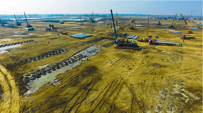 【背景】±800千伏錫泰特高壓直流換流站站址內(nèi),工程建設(shè)者們正冒著零下8攝氏度的嚴(yán)寒進(jìn)行基礎(chǔ)施工。