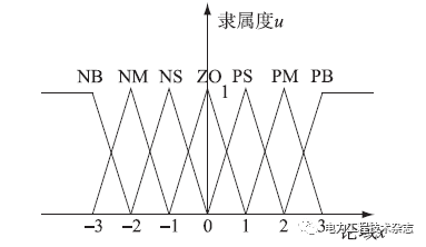 由于模糊控制器輸入的是模糊量,所以必須要對輸入進(jìn)行模糊化。每種運(yùn)行工況對應(yīng)的參數(shù)不同,因此本文對不同的運(yùn)行工況分別設(shè)置模糊控制器的參數(shù),在實(shí)際運(yùn)行中根據(jù)不同的運(yùn)行工況調(diào)用。根據(jù)選取的輸入量和輸出量在模糊集上的基本論域可以得到其各自的隸屬函數(shù),由于輸入量UDC,ΔUDC和輸出量K的模糊集上的基本論域是相同的,所以它們的隸屬函數(shù)相同,如圖4所示。