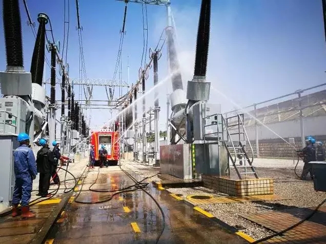 輸變電設(shè)施是電網(wǎng)輸送電能的關(guān)鍵裝備,絕緣子又是輸變電設(shè)施中的最基礎(chǔ)的部件,絕緣子出現(xiàn)臟污是發(fā)生閃絡(luò)事故的根源。為做好十九大保供電工作,南方電網(wǎng)云南公司對變電站設(shè)備進行了帶電水沖洗——采用高壓水泵將凈化后的高阻值純凈水噴到設(shè)備表面,通過水柱的擊打和水流的渦漩將設(shè)備表面污穢溶解帶走,以達到降低設(shè)備表面鹽密值的效果。與目前采用的停電清掃、帶電氣吹清掃、帶電機械清掃等清掃措施相比,帶電水沖洗具有處理突發(fā)能力強、不要求停電作業(yè)、對生產(chǎn)運行影響小、成本低等多方面的優(yōu)勢。