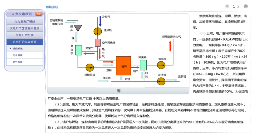 燃煤機(jī)組電站三維多媒體培訓(xùn)系統(tǒng)以300MW燃煤發(fā)電機(jī)組為原型,圍繞機(jī)組的“專業(yè)——系統(tǒng)——設(shè)備——基礎(chǔ)知識(shí)”為主線,對(duì)整個(gè)電站生產(chǎn)工藝到各系統(tǒng)、各設(shè)備的工作流程,再到各設(shè)備部件等進(jìn)行全方位、多系統(tǒng)、多角度的講解與展示。