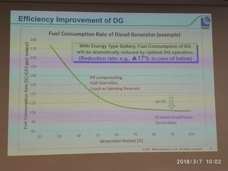 NGK insulators公司的系統(tǒng)設計經理Hiroyuki Abe上午在亞洲開發(fā)銀行研究所給我們講解了PPT