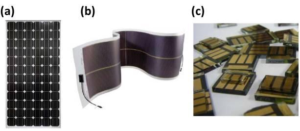 (a)單晶硅太陽能電池;(b)薄膜太陽能電池;(c)鈣鈦礦太陽能電池。
