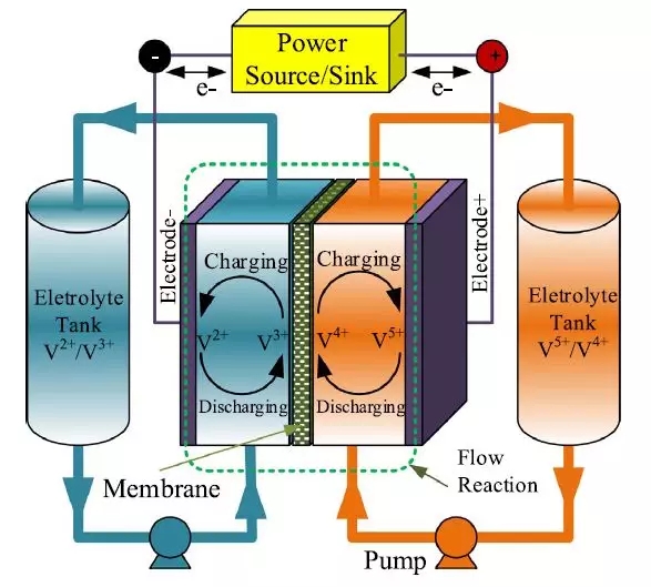 圖5釩氧化還原液流電池系統(tǒng)[47] 。