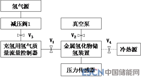 10.2.1 按照?qǐng)D2所示的連接示意圖將金屬氫化物儲(chǔ)氫裝置與高壓氫氣源、減壓閥、氫氣質(zhì)量流量控制器、壓力傳感器、冷熱源等儀器設(shè)備連接起來。