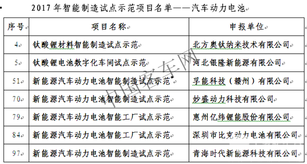 “2017年智能制造試點(diǎn)示范項(xiàng)目”18個(gè)汽車關(guān)聯(lián)項(xiàng)目中,新能源汽車動(dòng)力電池就占了7個(gè)。