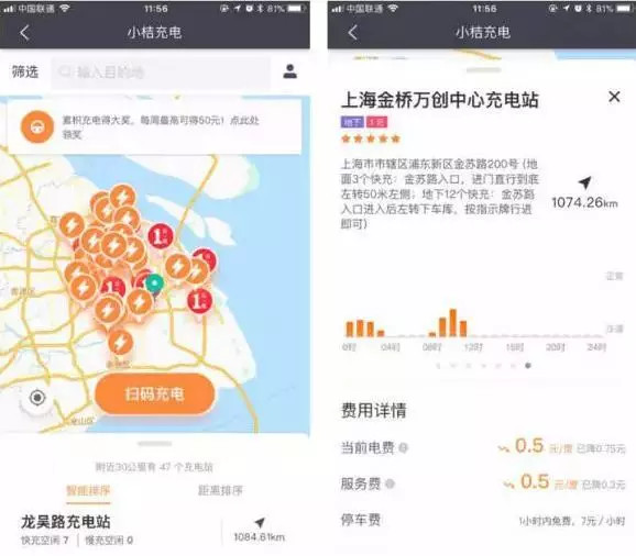 2、充電補貼:是在費用方面,小桔充電在上海試運營期間,電費+服務(wù)費一度只需1塊錢。正常情況下,公共樁的充電費約為1.5元左右。補貼是培養(yǎng)用戶習慣的殺器,誰能夠抗拒優(yōu)惠呢?這是滴滴的看家本領(lǐng)。