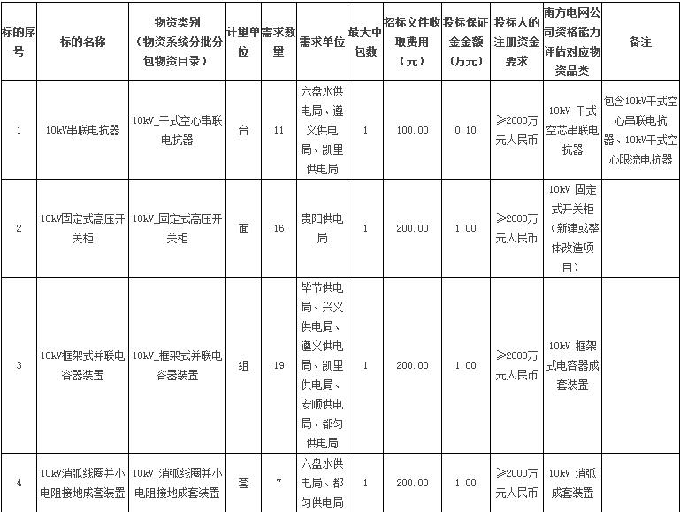 貴州電網(wǎng)2017年第四批省級(jí)集中采購(gòu)物資(一次設(shè)備)專項(xiàng)招標(biāo)
