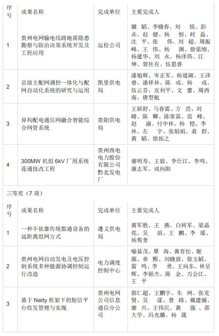 近日,貴州省電機(jī)工程學(xué)會(huì)公布《關(guān)于公布2017年度貴州省電力科技獎(jiǎng)的通知》,通知中稱,根據(jù)專業(yè)組初評(píng)意見(jiàn),2017年11月21日,科技獎(jiǎng)勵(lì)辦法評(píng)審專家委員會(huì)對(duì)專業(yè)組推薦成果進(jìn)行審查和表決,同意對(duì)“基于實(shí)時(shí)波形壓縮的過(guò)電壓監(jiān)測(cè)及工程應(yīng)用”“貴州電網(wǎng)輸電線路災(zāi)害預(yù)警與防災(zāi)輔助決策平臺(tái)研究”等18項(xiàng)科技進(jìn)步成果、“貴州電網(wǎng)220kV主變保護(hù)裝置升級(jí)改造及定值策略優(yōu)化研究及應(yīng)用”“貴州電網(wǎng)輸電線路地質(zhì)隱患勘察與防治決策系統(tǒng)開(kāi)發(fā)及工程應(yīng)用”等14項(xiàng)技改貢獻(xiàn)成果、“基于防護(hù)光纜布線裝置研究與應(yīng)用”“35千伏電壓互感器熔斷器安裝座的研制”等11項(xiàng)職工技術(shù)創(chuàng)新成果進(jìn)行公布并予以表彰。