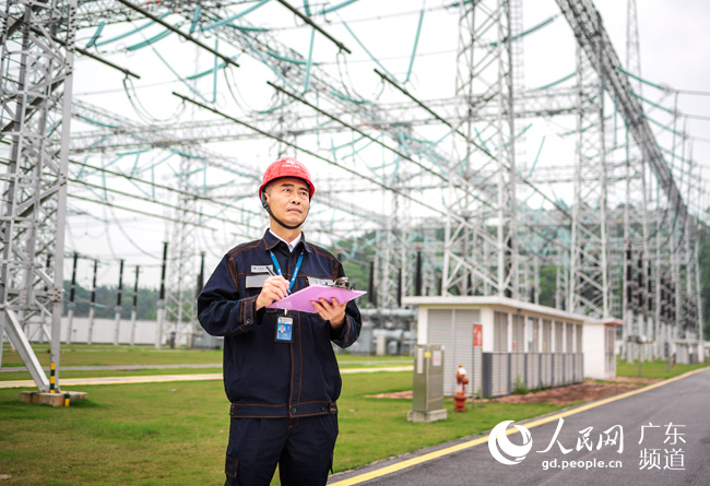 周哲在變電站現(xiàn)場(chǎng)工作。南方電網(wǎng)廣州供電局 供圖