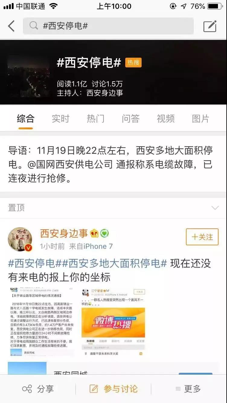 #西安停電#的話題已在微博上帶上了“熱搜”的標(biāo)識(shí)